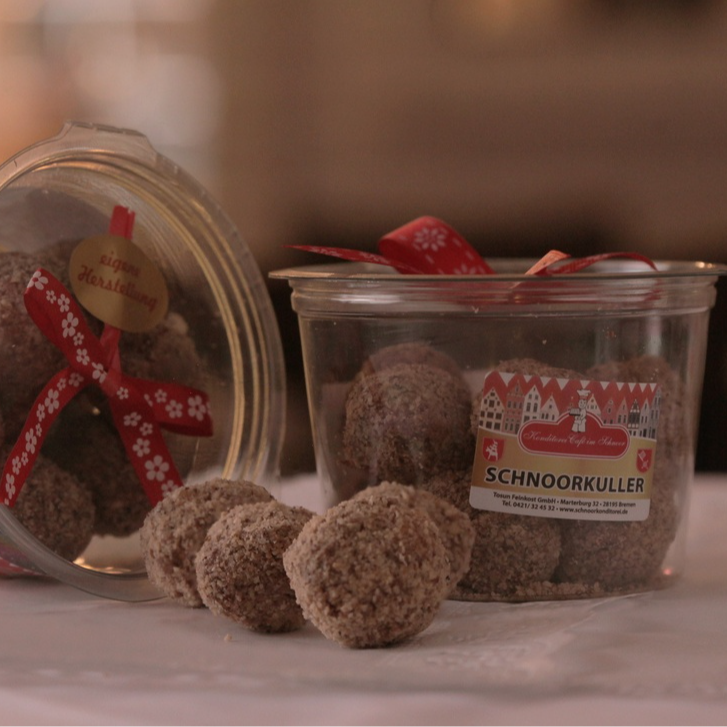 Die patentierte Spezialität des Hauses aus zartem Nussbaiser mit Nougat-Cremefüllung umhüllt von feiner Vollmilchschokolade und frisch gerösteten, gemahlenen Haselnüssen verpackt in einer Geschenkbox.